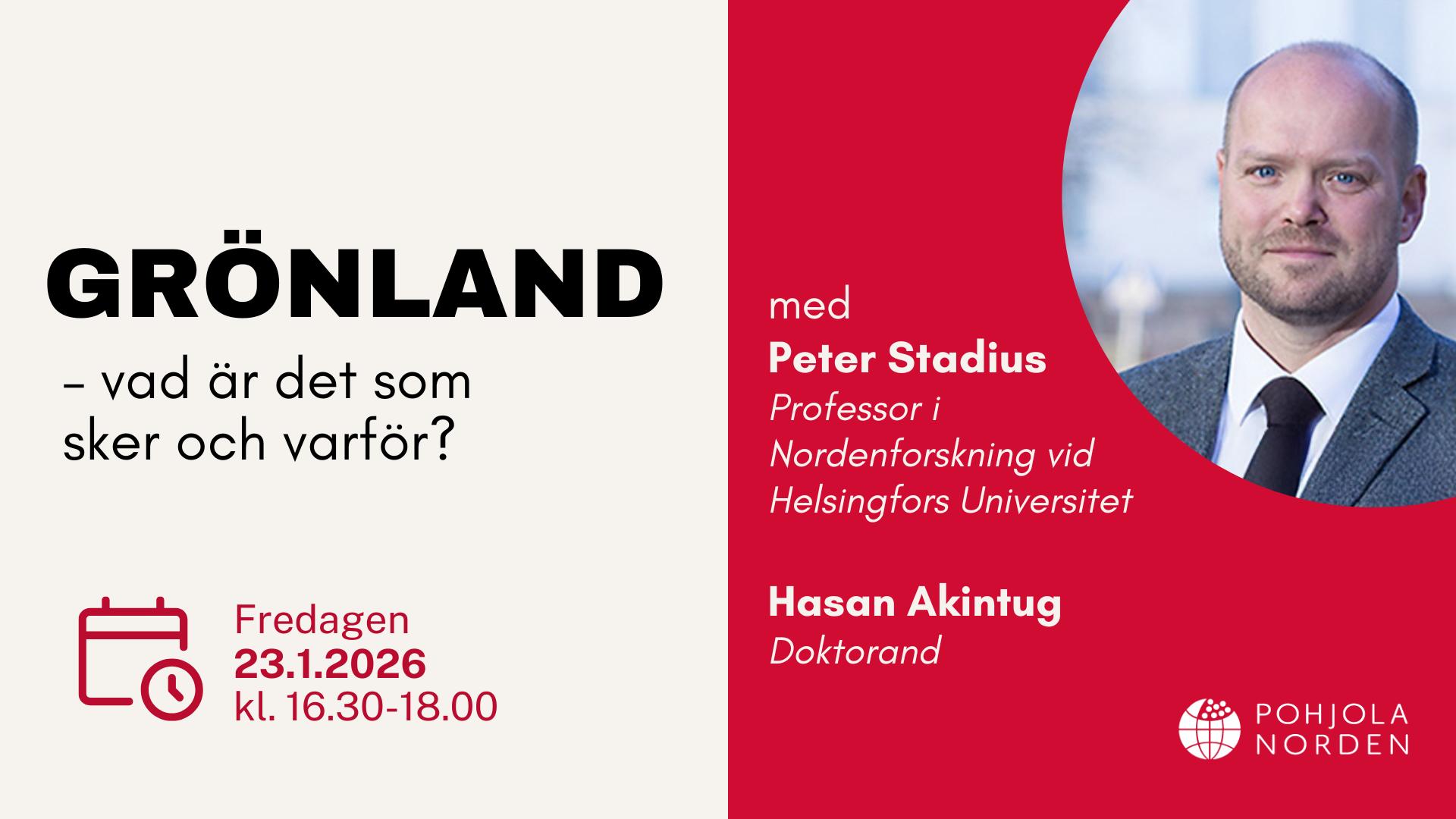 Keskustelijoina ovat Pohjoismaiden tutkimuksen professori Peter Stadius  ja väitöskirjatutkija Hasan Akintug.