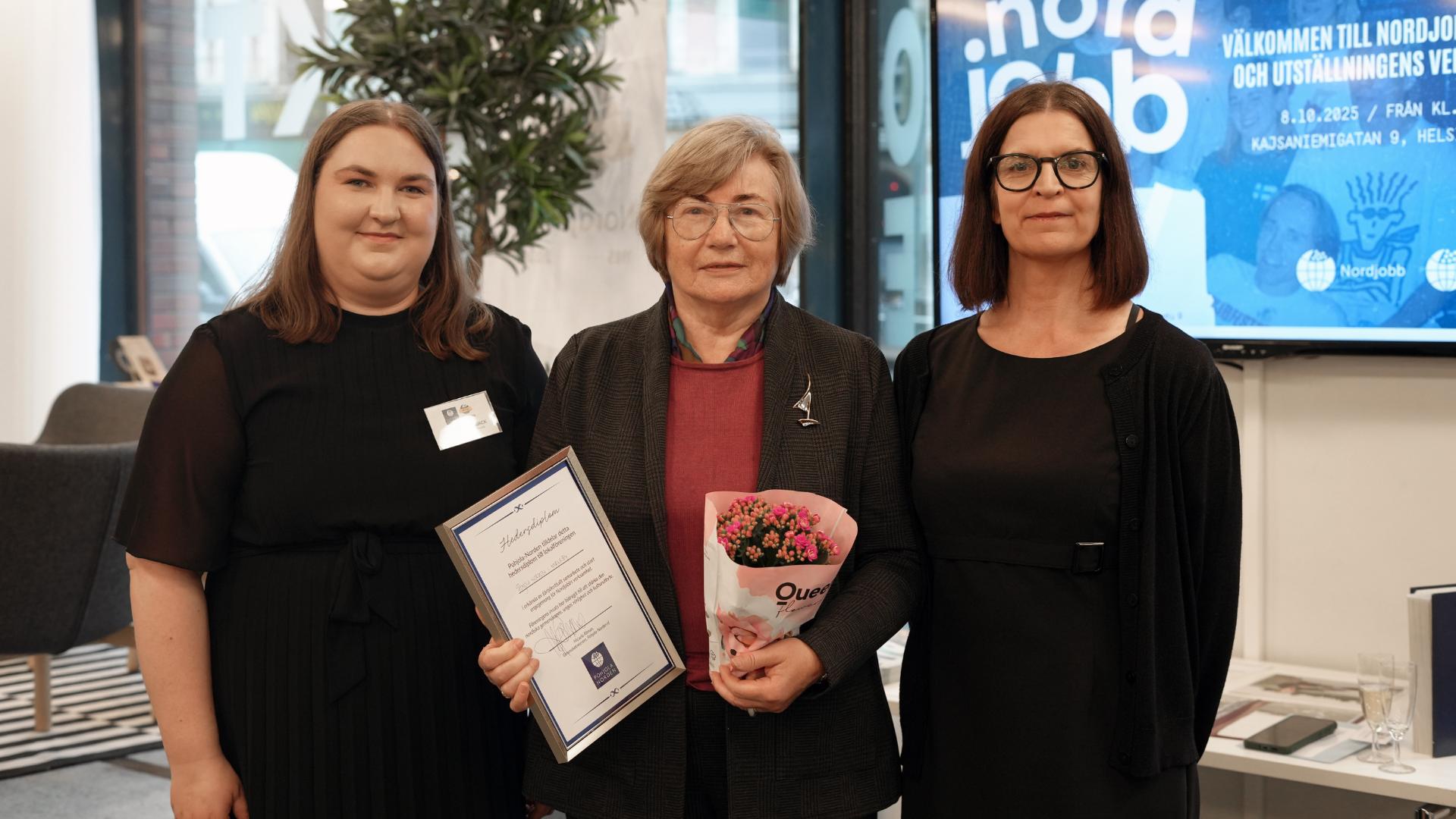 Under tillställningen överlämnade Pohjola-Nordens generalsekreterare Micaela Röman och Nordjobb Finlands projektledare Mathilda Hagback ett hedersdiplom till Brit Stenman, ordförande för Pohjola-Norden i Karlebyregionen. Hedersomnämnandet delades ut som ett erkännande för lokalföreningens långsiktiga och förtjänstfulla arbete till stöd för och utveckling av Nordjobbs verksamhet.
